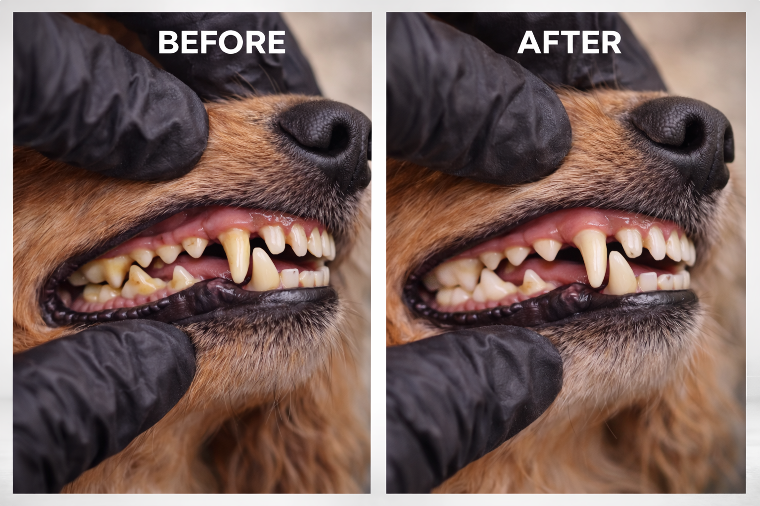 Clean teeth are not cosmetic. They are foundational to your dog’s overall health — supporting the heart, kidneys, and immune system while reducing inflammation and discomfort.